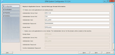 Specify the Weblogic Domain details, if not configure a new one